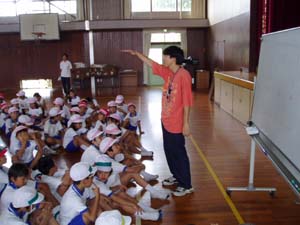 | 今日の全体指揮はグッダイハシモトさん | 場面の様子や動きの流れを聞いています。 |