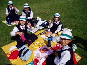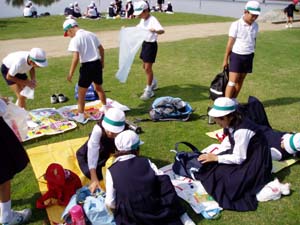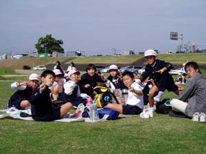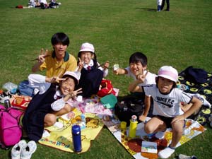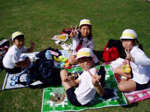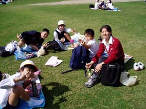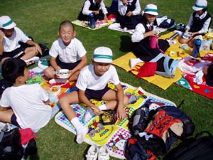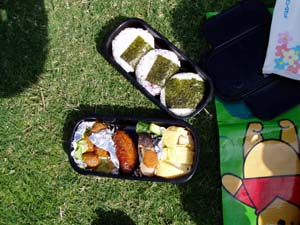 | お家の方が朝から作ってくれたお弁当 | 芝生の上で食べるとおいしいですね。 |