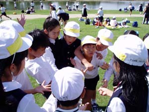 | 広い芝生の上でだるまさんがころんだ! | こっちはおにごっこ! |