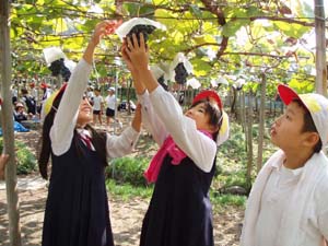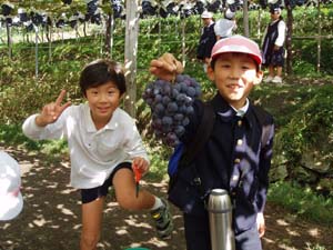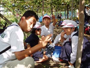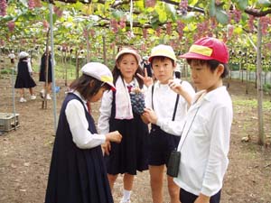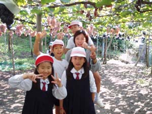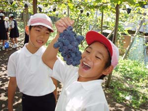 | 今日は実習の先生も来てくれました。 | ビタミンCがたっぷり入ったブドウは |