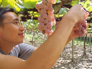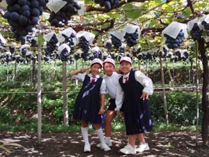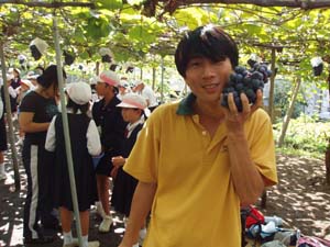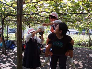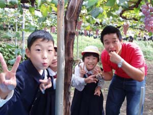 | 見て!こんなに大きいよ。 | とりあえずブドウの前で記念写真! |