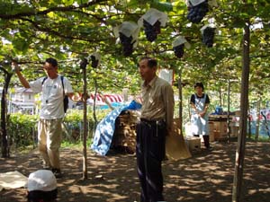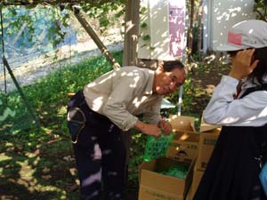 | 中辻農園の中辻さんからあいさつと | おみやげのブドウを頂きました。 |
