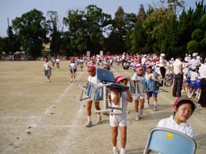 | 校長先生のお話を聞きます。 | 後片付けです。 |