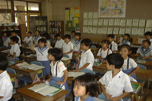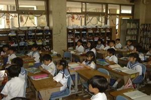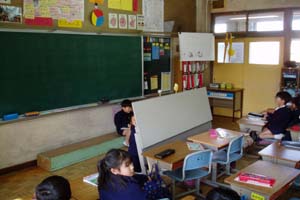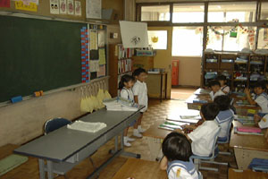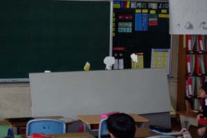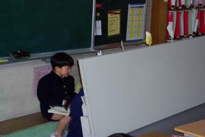 | 大きな声で詩を読んでいるよ!耳をふさいでいる子がいるでしょ。 | 日直の次に座っている子がおたずねをするよ。 |