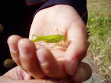 | とってもきれいな花たばができました | 本でしらべるとクビキリギスという名まえでした |
