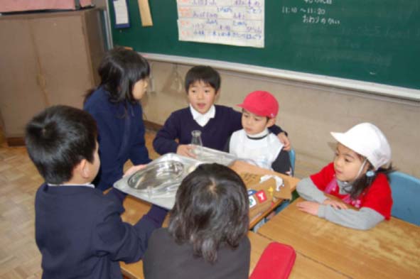 | 音楽で冬の音さがしをしましたが、幼稚園の子が全然できてなかったので、ずいずいずっころばしにしたり、何度も繰り返したりしたらできようになりました。給食掃除では、スープの入れ方を教えたら、いっしょにやってくれたのがすごくうれしかったです。 | ![]() |