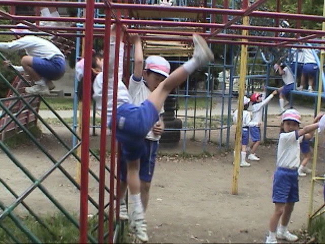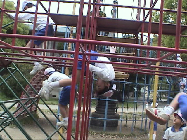 ロケットタワー (ジャングルジム)で イラストのように やってみよう! |