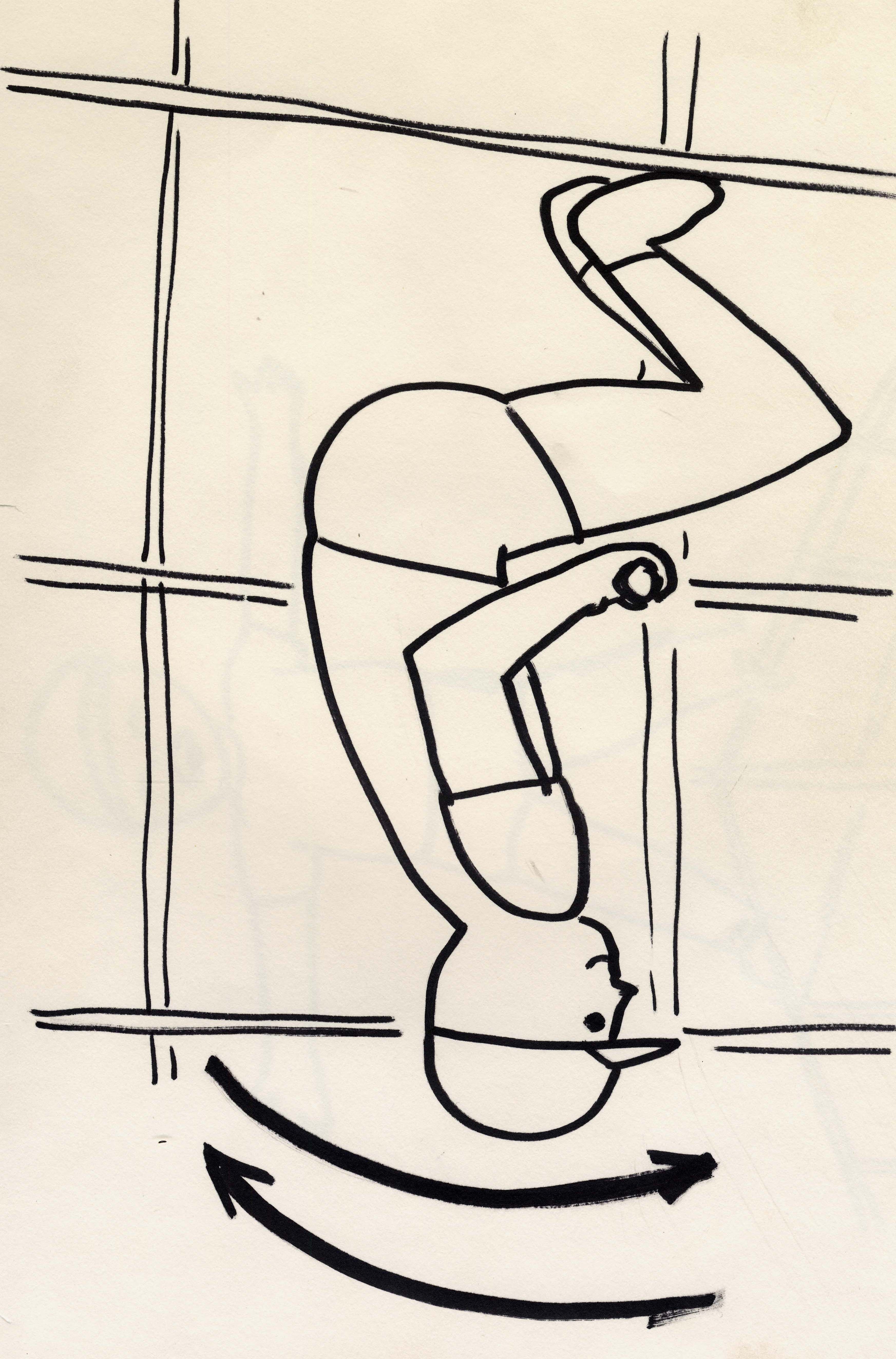 逆さになって 腰が棒にのったら もう回るよ! |