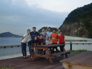 白崎再到着。海辺のイタリアン・レストランで夕食。みんな少しリッチにコース料理を楽しむ。4回生にとっては,学生最後の夏休み。その最後を飾るにふさわしい思い出になったなら幸いです。 |