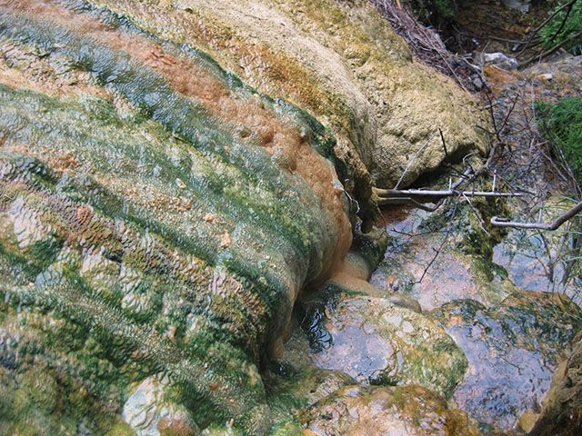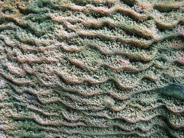 堆積物表面には小さなリム構造が見えます。炭酸カルシウムのマウンドを形成しています。