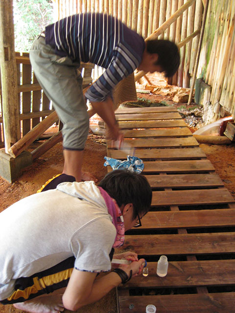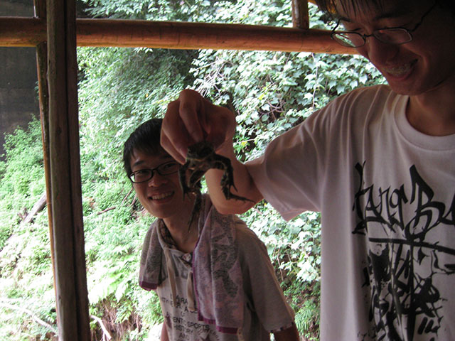 カエルをつかまえてはしゃぐ若者たち。お疲れ様でした。