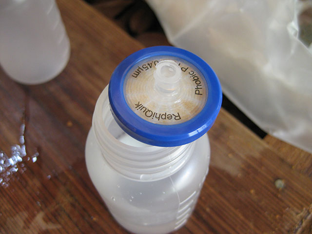 今回はフィルターで採水しています。注射器の先にフィルターを取り付けるタイプですが、かなり固そうです。