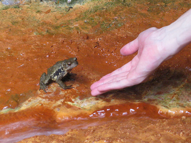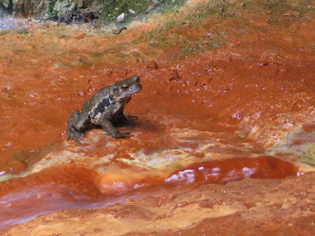 カエル登場。温泉では二酸化炭素が脱ガスしているので、蚊が集まりやすく、それを食べてにきているのかも。