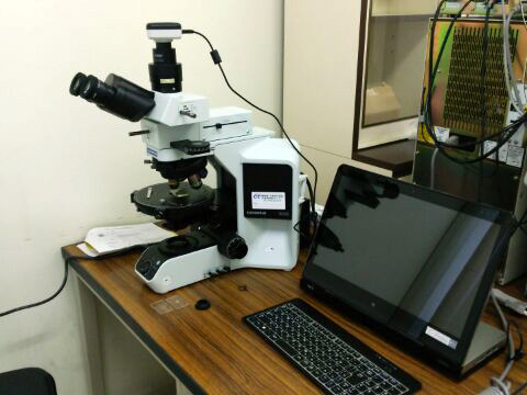 右)OLYMPUSのシステム偏光顕微鏡。パソコンで撮影および画像処理が可能です。