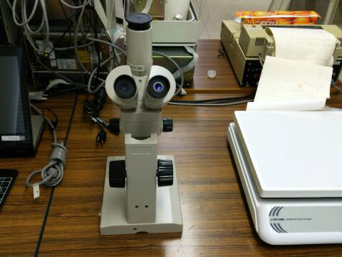 左)実体鏡はNikon。石工室でホコリだらけだったのを拾ってきました。石工室も少しずつ整備していきたいですね。