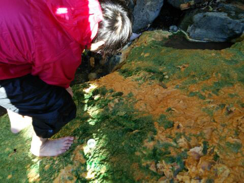 日差しはあるのですが、空気が冷たい。水流も細くなっていて、せっかく温泉なのに足先から冷え込んでくるという。。。