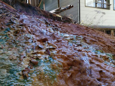 以前の採水地点6番(左)。前より石灰化が進んでいるように思えます。右は、現在の採水地点6番。