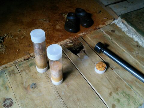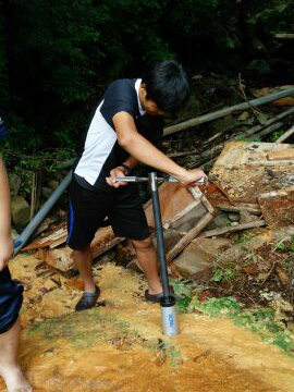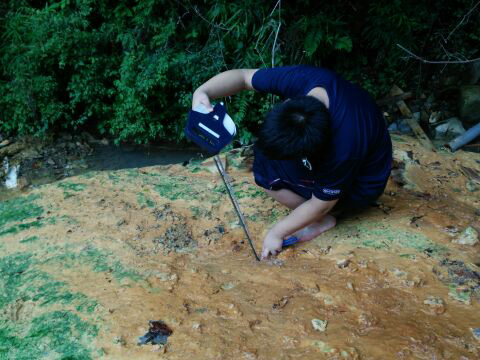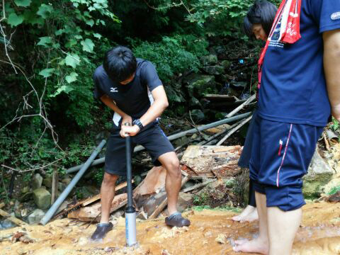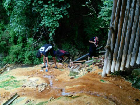 表面に鉄分の多い沈殿物ができていて、かなり固い。右)これは何をしているところかな?