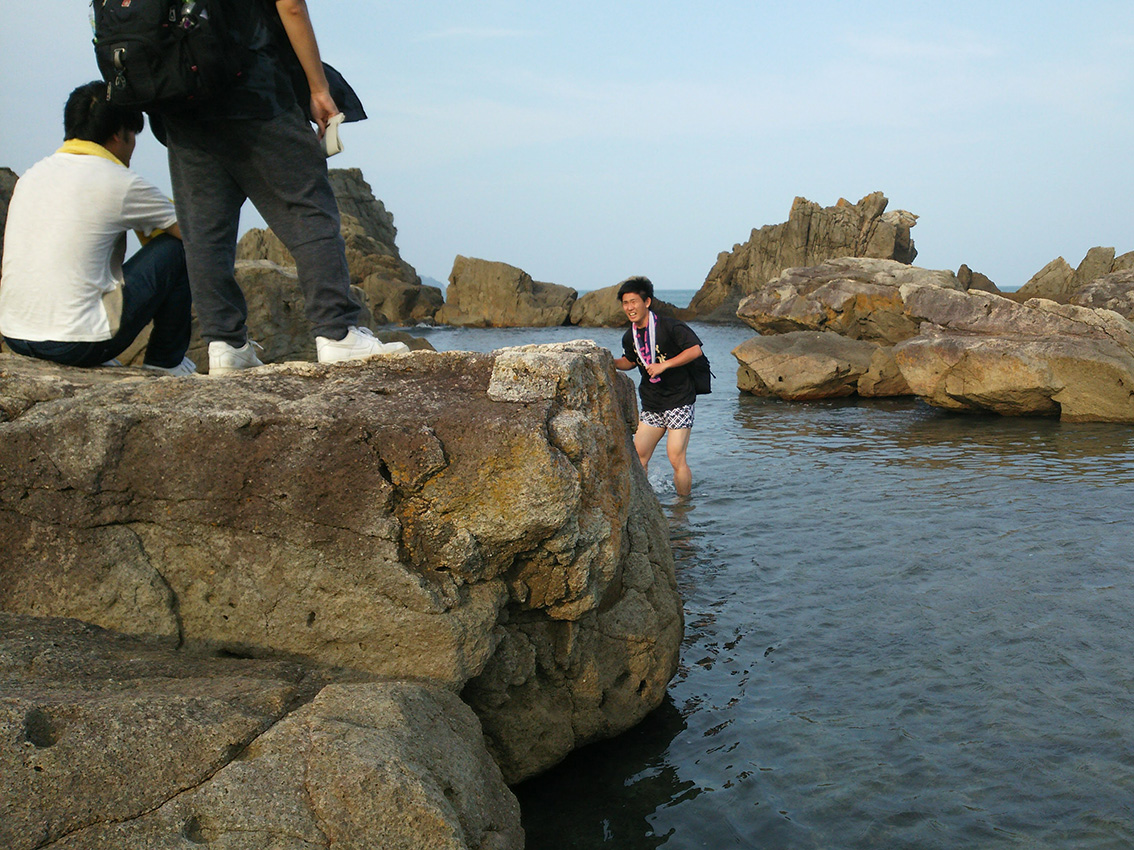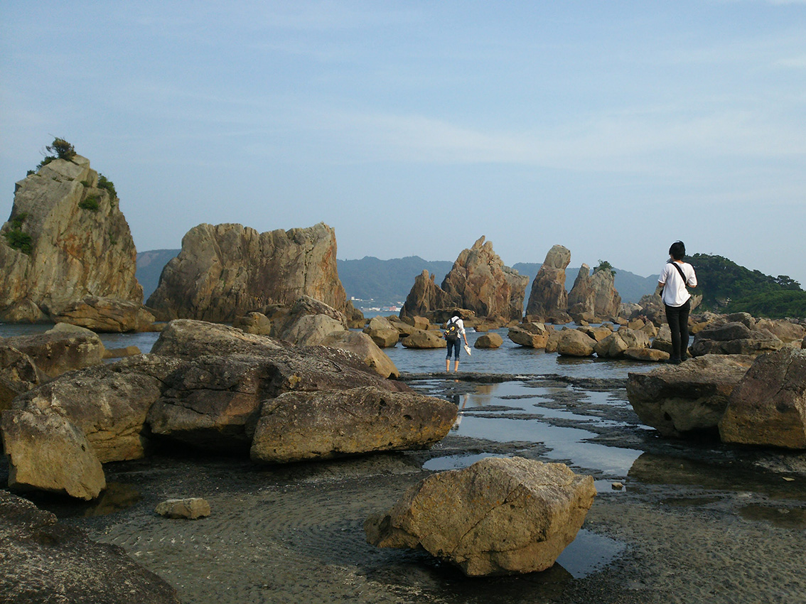2日目の最後は、橋杭岩。堆積岩に貫入した花崗岩質の岩脈が観察できます。ここは、道の駅になっていてアクセス良好でした。だんだん潮が満ちてきて、戻れなくなる人も。
