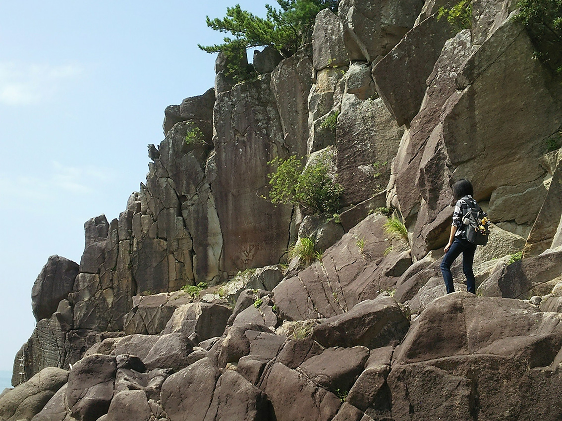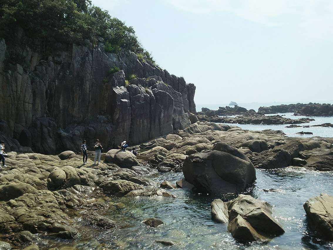 大狗子半島の海岸。熊野酸性岩類の柱状節理です。