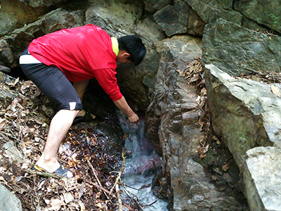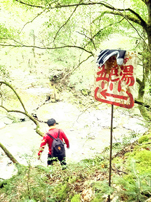 岩の割れ目から自噴している野湯です。温度低めで、さすがに入浴する勇気なし。
