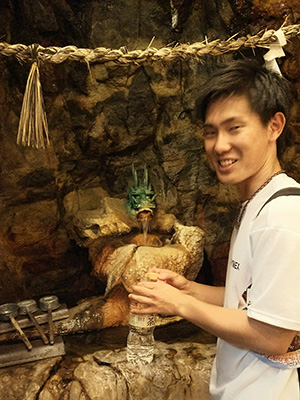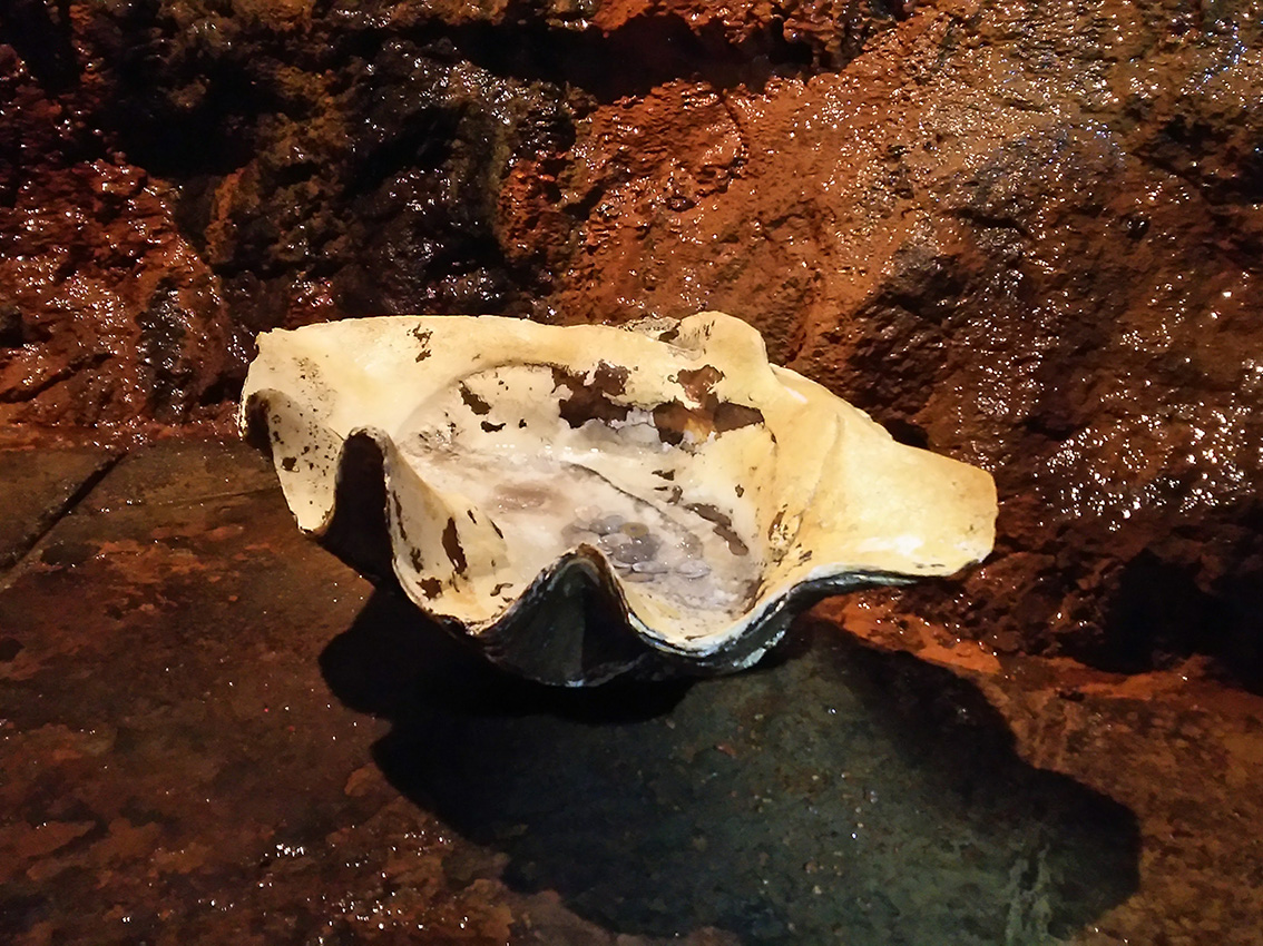 こちらは三段壁洞窟にて。竜の口から温泉が湧き出ています。