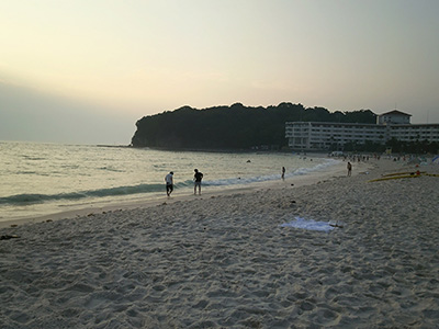 しらすな温泉は午後3時でおしまいだったようです。残念。白浜はおだやかな夕焼けでした。