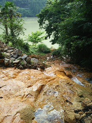 実は温泉が豊富な和歌山県。調査しないで帰る手はないでしょう。まずは、近畿地方で一番濃い温泉として有名な花山温泉へ。大きなトラバーチンのモニュメントが見えますが、現在進行形のものは見当たりません。