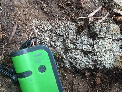 柱状節理で有名な場所。転石も、六角形の節理の面影がありますよね。石英の斑晶がごろごろ見えます。