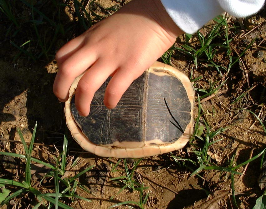 天然記念物のセマルハコガメ! 甲羅がちょうつがいのようにとじる。