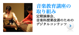 音楽科授業改善のためのデジタルコンテンツ 本ホームページでは、2008年度【誰にもできるステップアップ教材】(わらべうた編・コーラス編)Vol. 1を配信しています。学校関係者や合唱活動をされている方をはじめ、ぜひご活用ください。 |