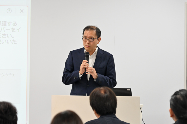 続いて、文部科学省総合教育政策局教員人材政策課長の大江耕太郎氏が「教職課程の在り方の検討の中で教員養成フラッグシップ大学や全国の大学に期待すること」と題して基調講演を行い、中央教育審議会での議論の動向や教員養成フラッグシップ大学の先進的な取り組みが教職課程の制度改革の根拠として重要であることが示されました。