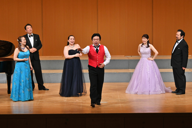 プログラムは2部構成で行われ、第1部では「オペラ名曲セレクション」として、声種による響きの違いやオペラの見どころについて解説があり、第2部では『椿姫』のハイライトが上演され、生徒と保護者は華やかな衣装と迫真の演技、そして美しい歌声を鑑賞しました。