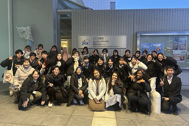 国際社会とのつながりや国際協力を考えることを目的としたJICA関西訪問プログラムを令和8年1月6日(火)に実施し、本学の教員研修留学生(*1)と本学附属高等学校平野校舎(WWL(*2)拠点校 )および池田校舎生徒(共同実施校)が参加しました。