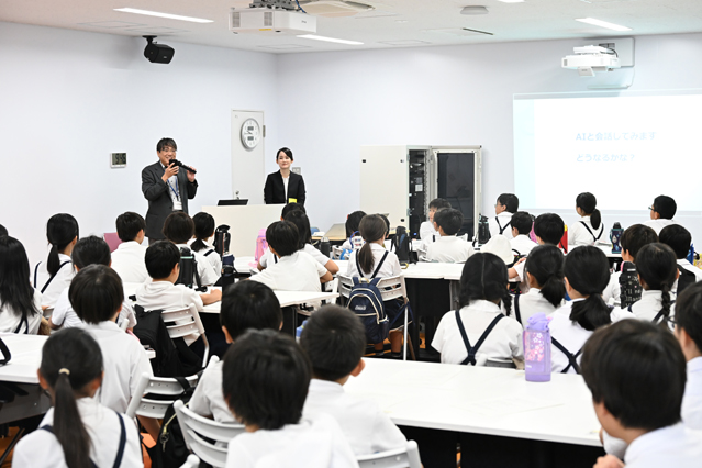 大阪市立生魂(いくたま)小学校の5年生63人を対象とした「未来の学校を考えよう」というテーマの授業を、仲矢史雄産官学イノベーション共創センター副センター長、理数情報教育系の中野淳特任教授、産官学イノベーション共創センターの相原結共同研究員が9月2日(火)にみらい教育共創館にて実施しました。
