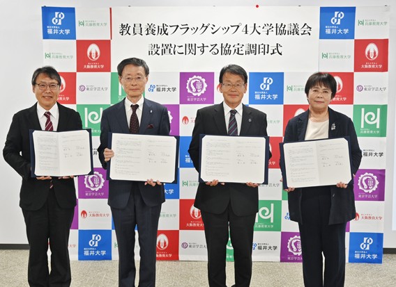 今後の教員養成の在り方等の検討に資する成果発信を展開することを目的として協定を結び,教員養成フラッグシップ大学4大学協議会を設置しました。