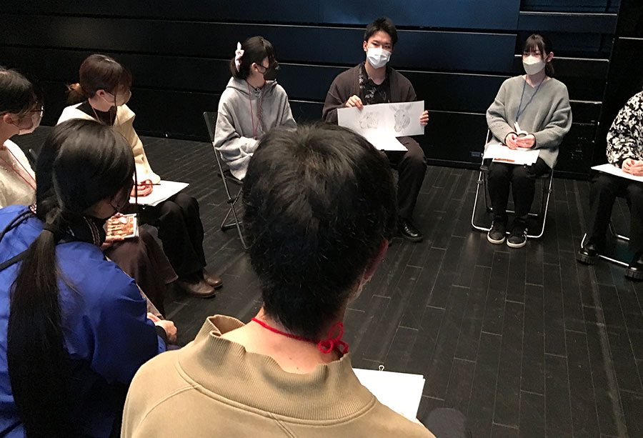スケッチした視点をもとに対話しながら鑑賞する様子