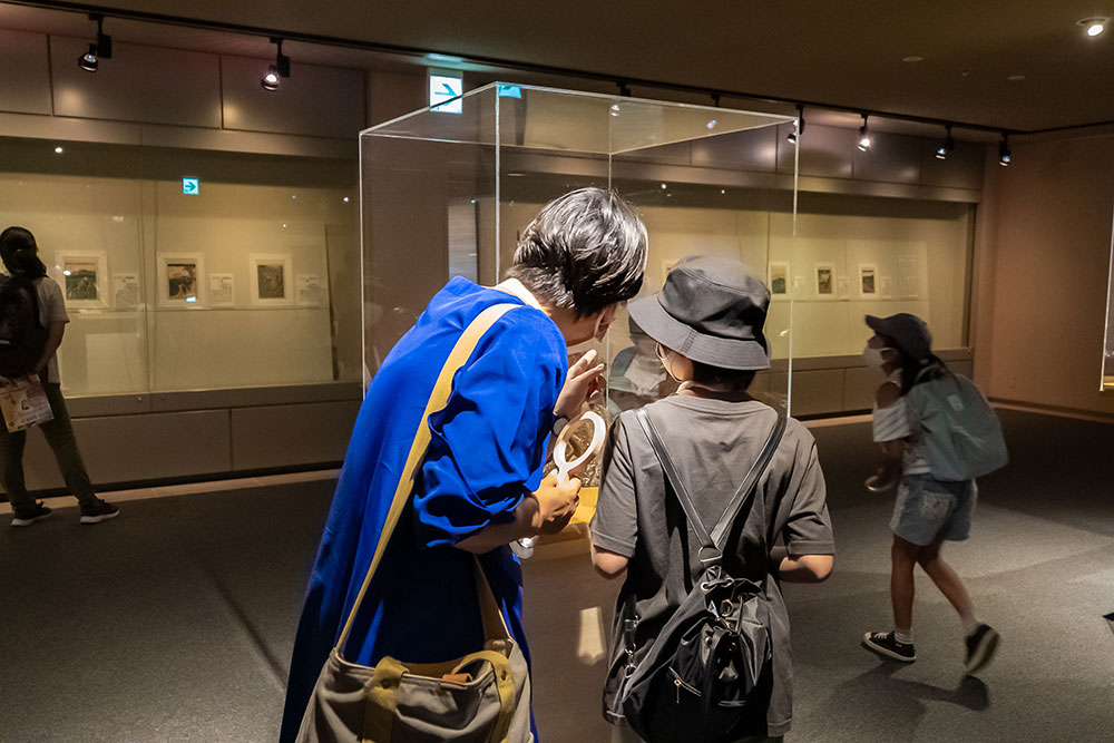 和泉市久保惣記念美術館で子どもたちは、館内の美術作品を鑑賞しました。橋詰副館長からの講話もありました。ワークショップ、アートパプリック探索、美術館鑑賞と今日はたくさん歩き、たくさんの学びや気づきをもらってみんな十分満足できたかな?鑑賞ルーペを使って「これまでには気がつかなかったことに気づくこと」ができたかな?