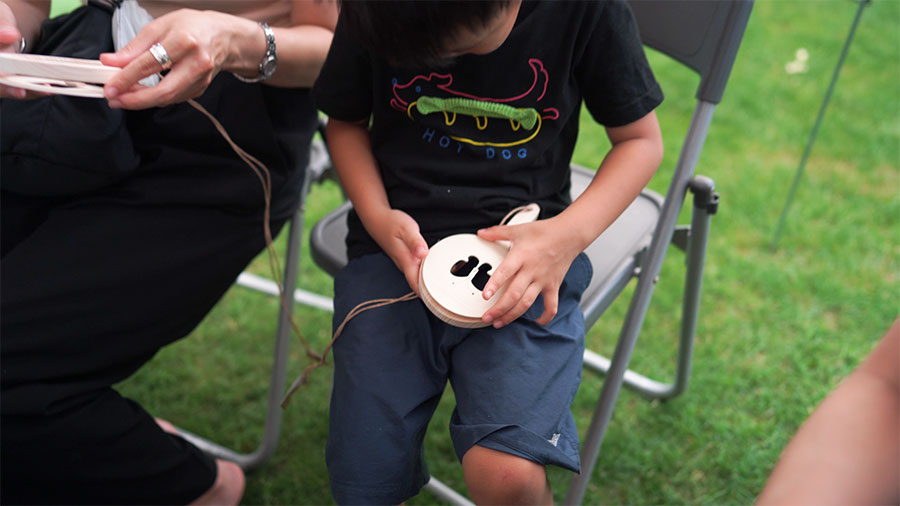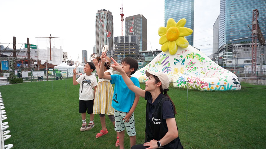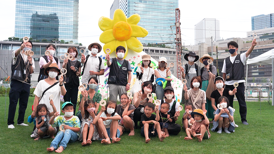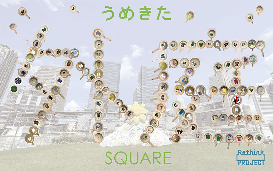 「ちょうちょ」「アイスクリーム」「Tシャツ」等の型キットのアイテムにつきましては大阪教育大学の協力のもと実現しており、参加された方々に色や形の新たな世界を発見“Rethink”して頂きました。それを覗いて皆が発見した世界を写真に撮り、それらを集めて「外庭」の文字をかたどったポスターを作成しました。