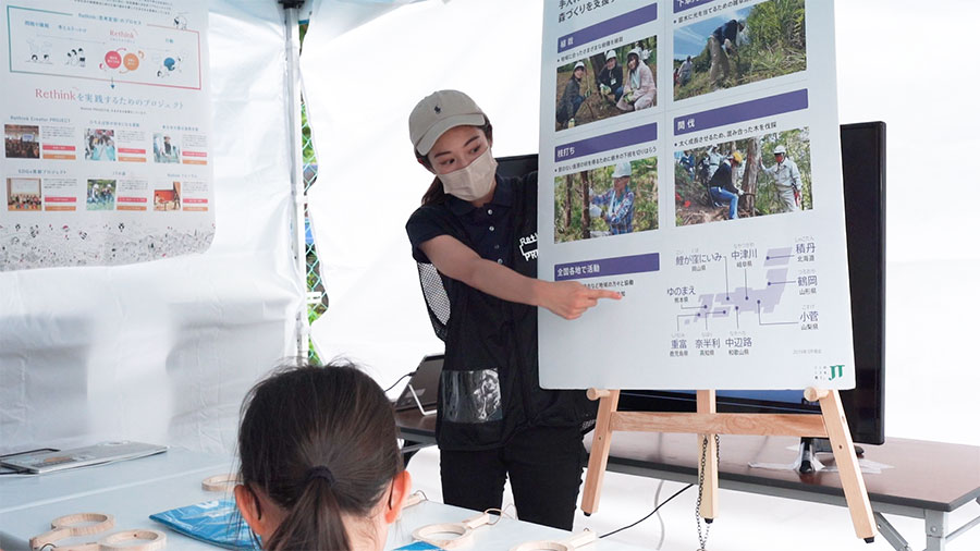 JTでは地域貢献活動「RethinkPROJECT(リシンク プロジェクト)」の一環として、木を植え、森を整備することで豊かな自然を守る“JTの森”という活動を行なっております。本活動で使用した鑑賞ルーペは、JTの森の活動の一環として、間伐した木を用いてつくりました。