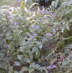 本州中部以南の山地に生えるユリ科の多年草。茎は直立して多くは単一であり、円柱形で表面に毛がある。葉は二列に互生しており、基部は茎を抱いていて毛が生えている。秋に葉腋に2〜3の花を出す。花には柄があり、上向きに咲く。さく果は3稜形で、中に淡褐色の種子がある。