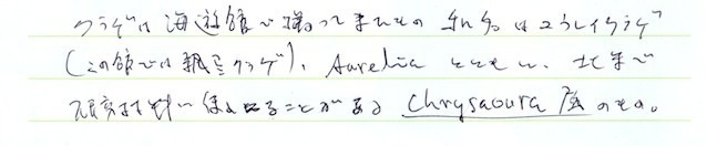 大学院を卒業し、理化学研究所で研究員をしていた私は、ミズクラゲを使った仕事を始めさせてもらうことになりました。ミズクラゲのライブラリー作りで苦戦し、約半年かかりましたが、やっと完成。その後プラナリアの仕事で短期ですが留学に行くことになりました。先生に留学先で習得する技術のことや、ミズクラゲのライブラリー作りの苦労話、今後ミズクラゲでやりたいと思っている研究のことを報告すると、