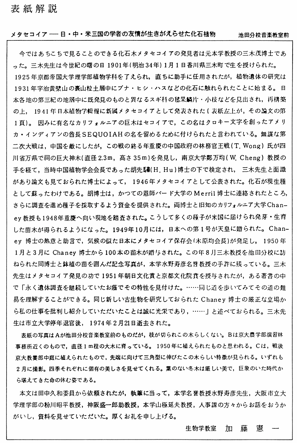 (大阪教育大学生物学教室四十年誌:口絵, 1990年12月25日発行)