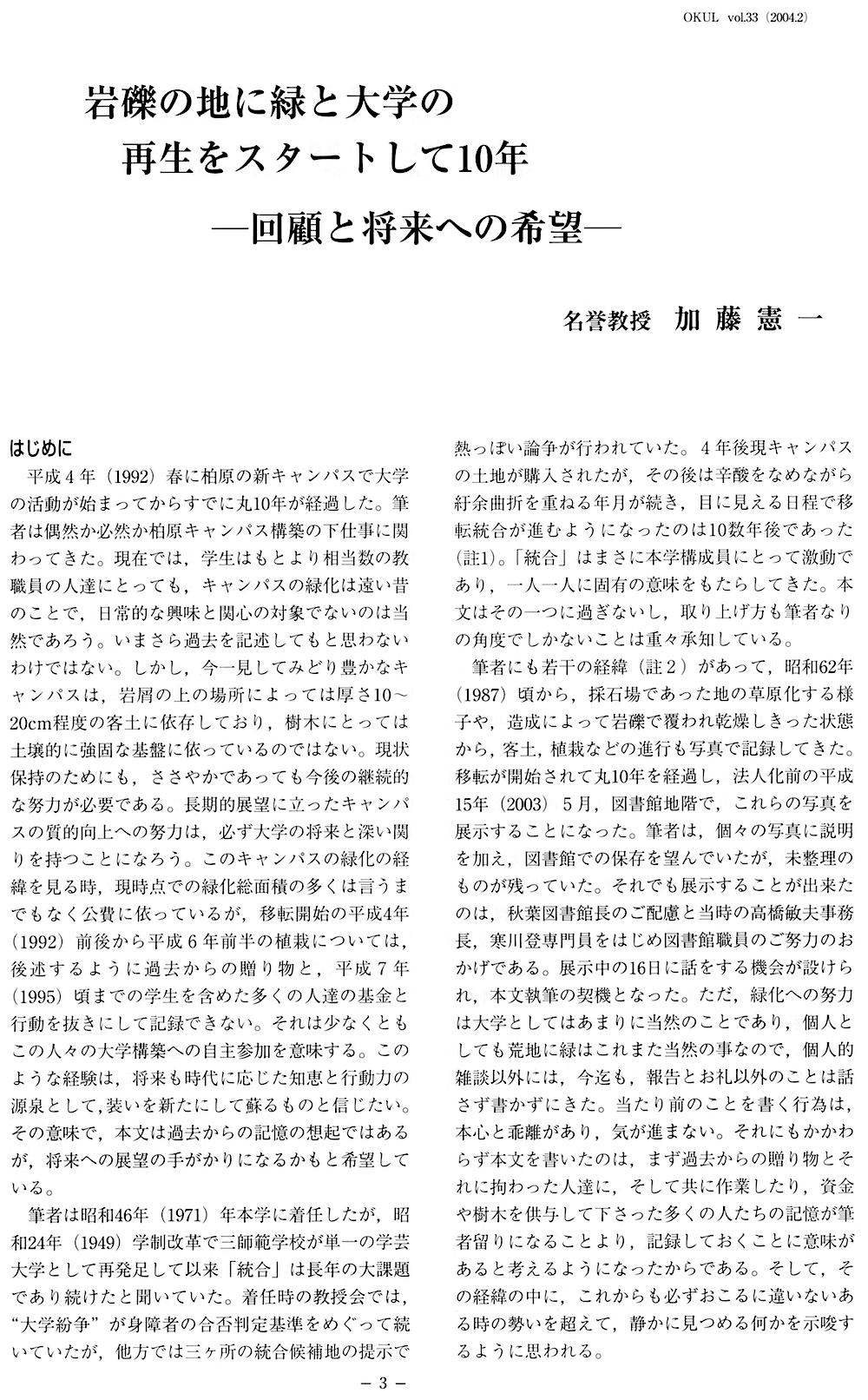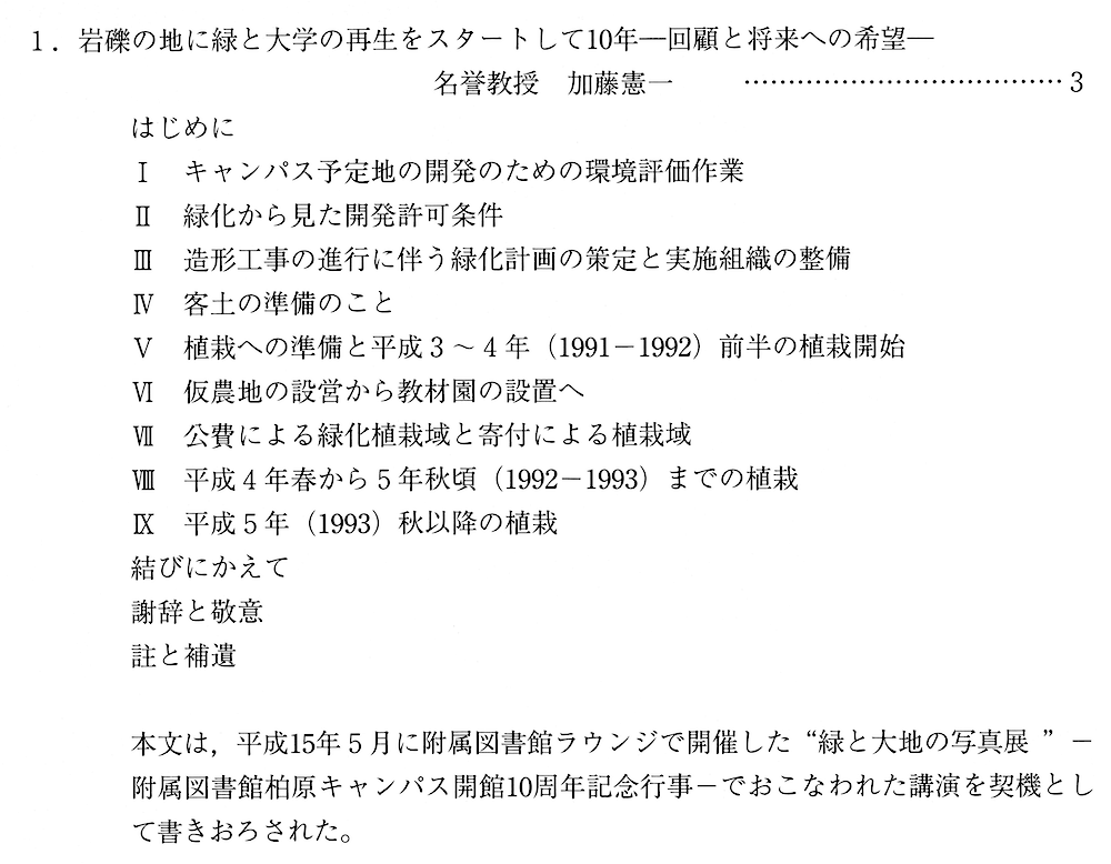 岩礫の地に緑と大学の再生をスタートして10年 〜回顧と将来への希望〜