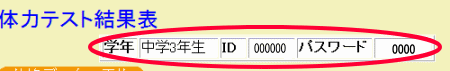 IDは体力テスト結果表の左上に表記されているものです。 |