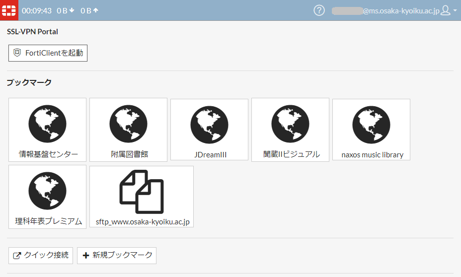 本学では、VPN装置として、「Fortinet社 Fortigate」を使用しており、接続にはブラウザでのアクセスかFortiClient VPNというクライアントソフトウェアが必要です。