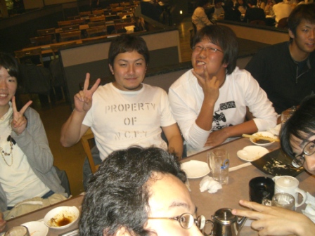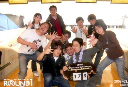 | 研究室の追いコンが難波で開催されました。院生のA君が飲みで自爆して、この後のボーリングに来られませんでした(笑) | |||