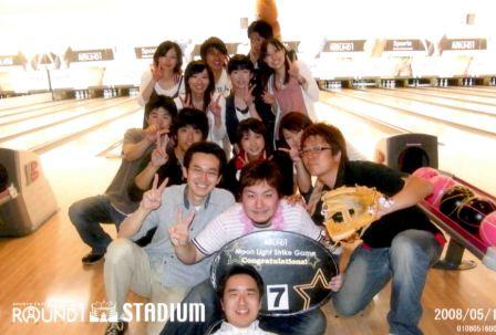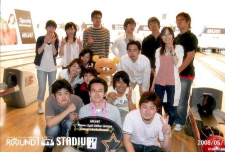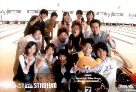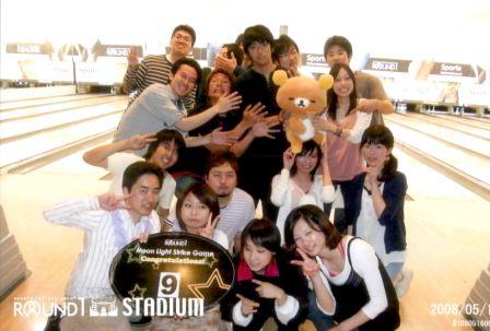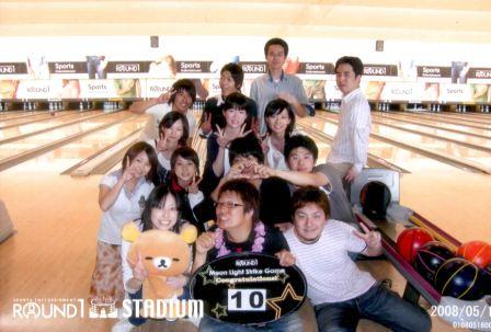 | 今回は3回生も交えてボーリング。12ゲームもやりました。今まであまりボーリングしたこと無い人は、これまでの人生で投げたボーリングの回数を今日だけで超えたのではないでしょうか? ちなみに以下の写真は、ムーンライトストライクゲーム(ラウンドワン独自のイベント:約1時間に1回ある)の写真オンリーです。ってことは、ムーンライトストライクゲームの時、この枚数だけストライクを出したってコトですな(笑)。 |