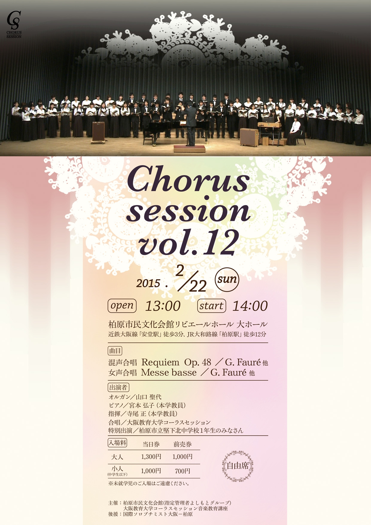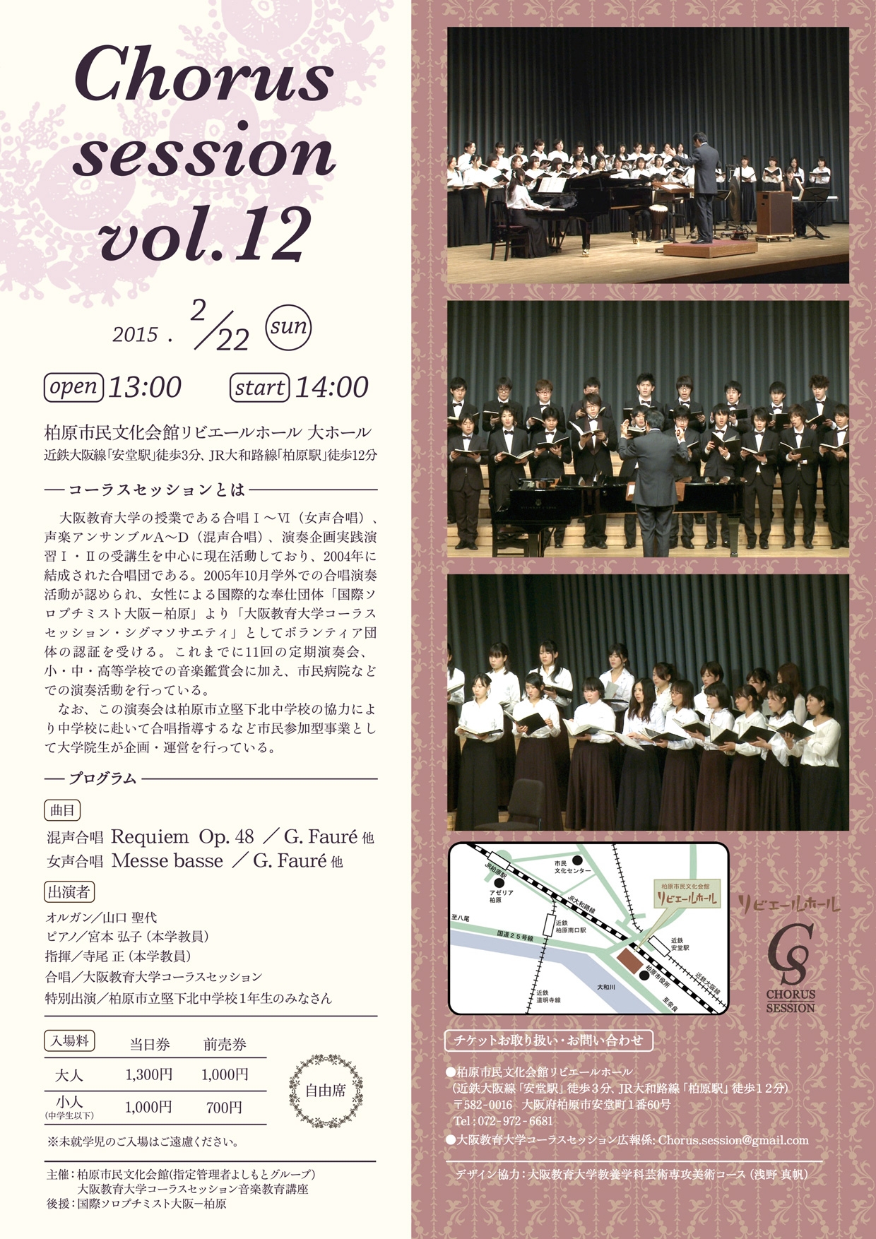 なお、この演奏会は市立堅下北中学校の協力により中学校に赴いて合唱指導するなど市民参加型事業として大学院生が企画・運営を行っている。